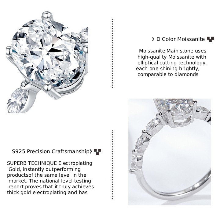 Classic four claw inlaid oval moissanite horse eye olive shaped irregular ring