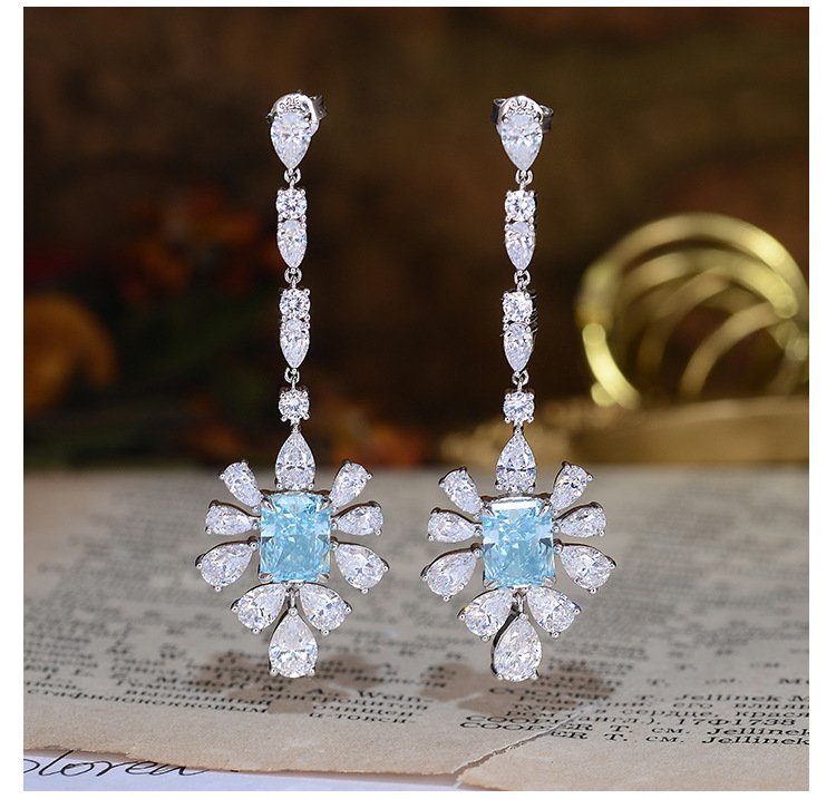 Rectangular Champaiba Earrings with Streamers, High-End Carbon Diamond, 7*9mm